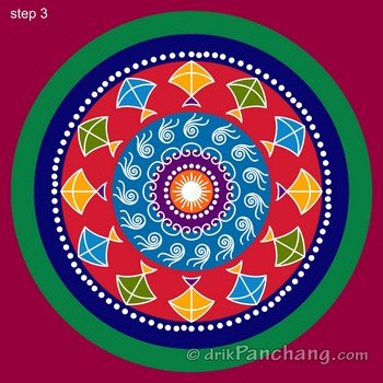 *DrikPanchang provides free Rangoli designs for its users only. Users can save them and send to their loved ones. These Rangoli designs are protected under copyright and should not be used for commercial purpose.